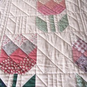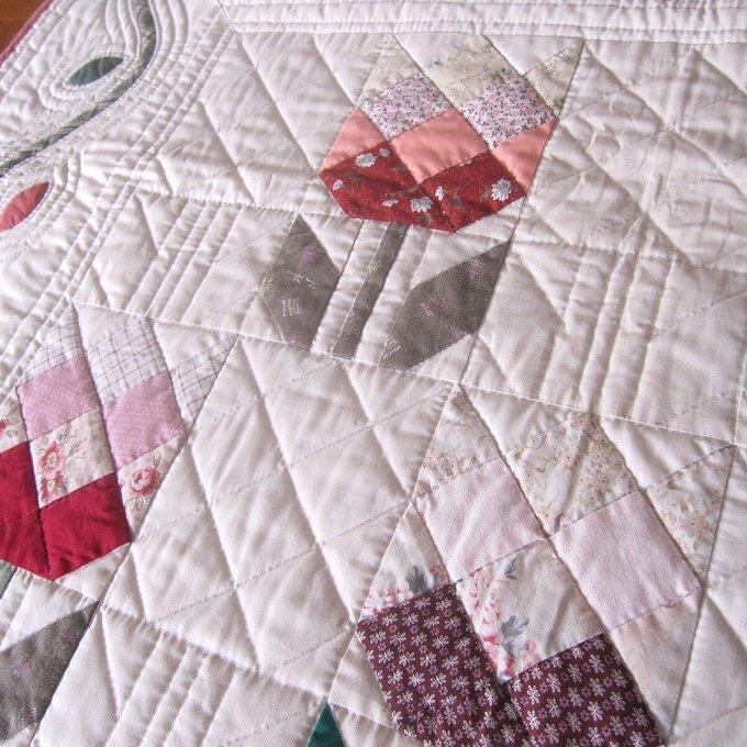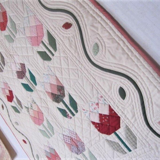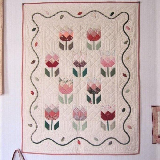 10本のチューリップ畑の周りにアップリケを施したタペストリーです。