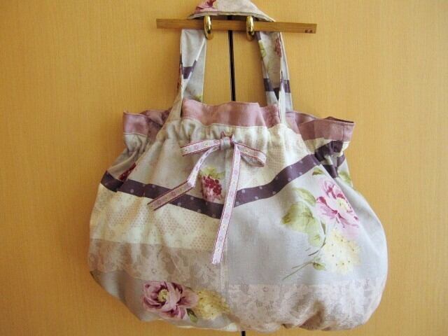 完成品☆パープルローズのギャザーバッグ★