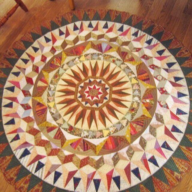 中心のブロックから外側に向かって、デザインで構成したメダリオンキルトです