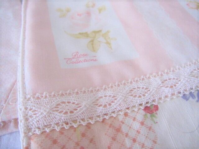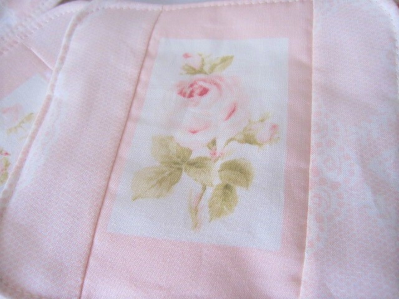 YUWAのフラワーバスケットデザインPO-521FB-ローズカードを使い、薔薇柄などのはぎれをパッチワークしたしました