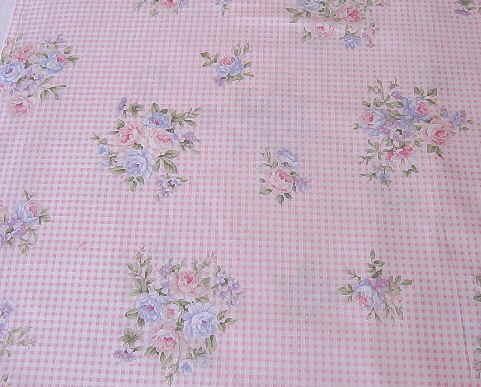 約2mm幅のピンクギンガムチェックに薔薇のブーケプリント
